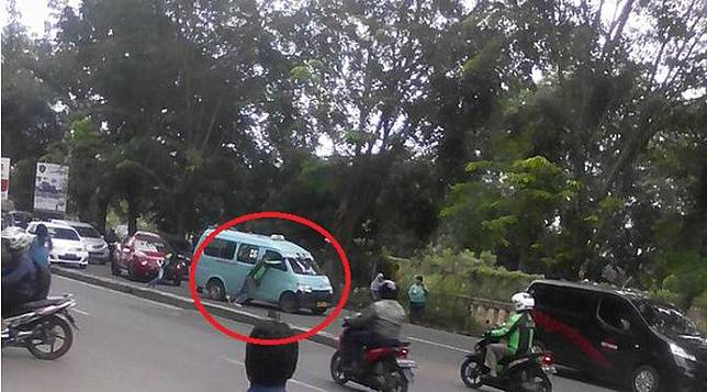 Bukannya berantem, lihat apa yang dilakukan oleh abang ojek online dan sopir angkot ini di jalan. (Foto: Facebook/Anoy Stanza)